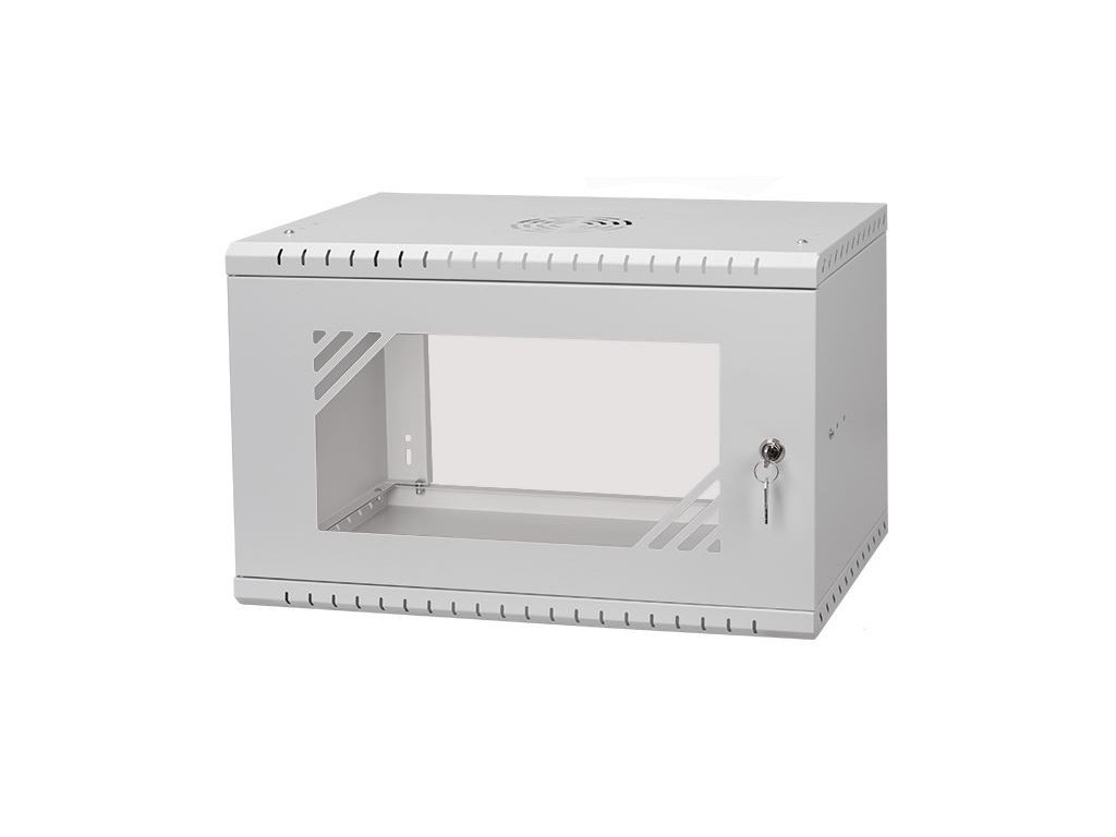 19Rack6U450 nástenný rack 19" 6U 520x450, sklo, demont, šedý