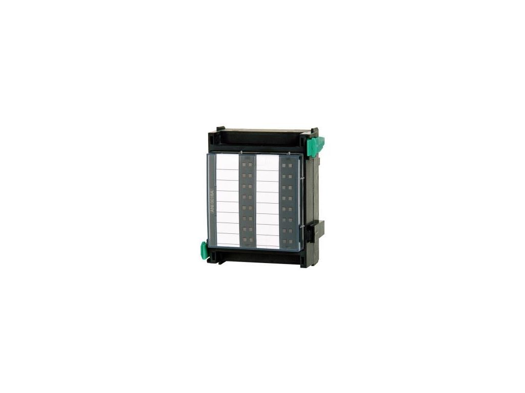 - Modul so 16 červenými a 16 žltými LED diódami dokáže zobraziť stav 16 individuálne programovateľných detekčných