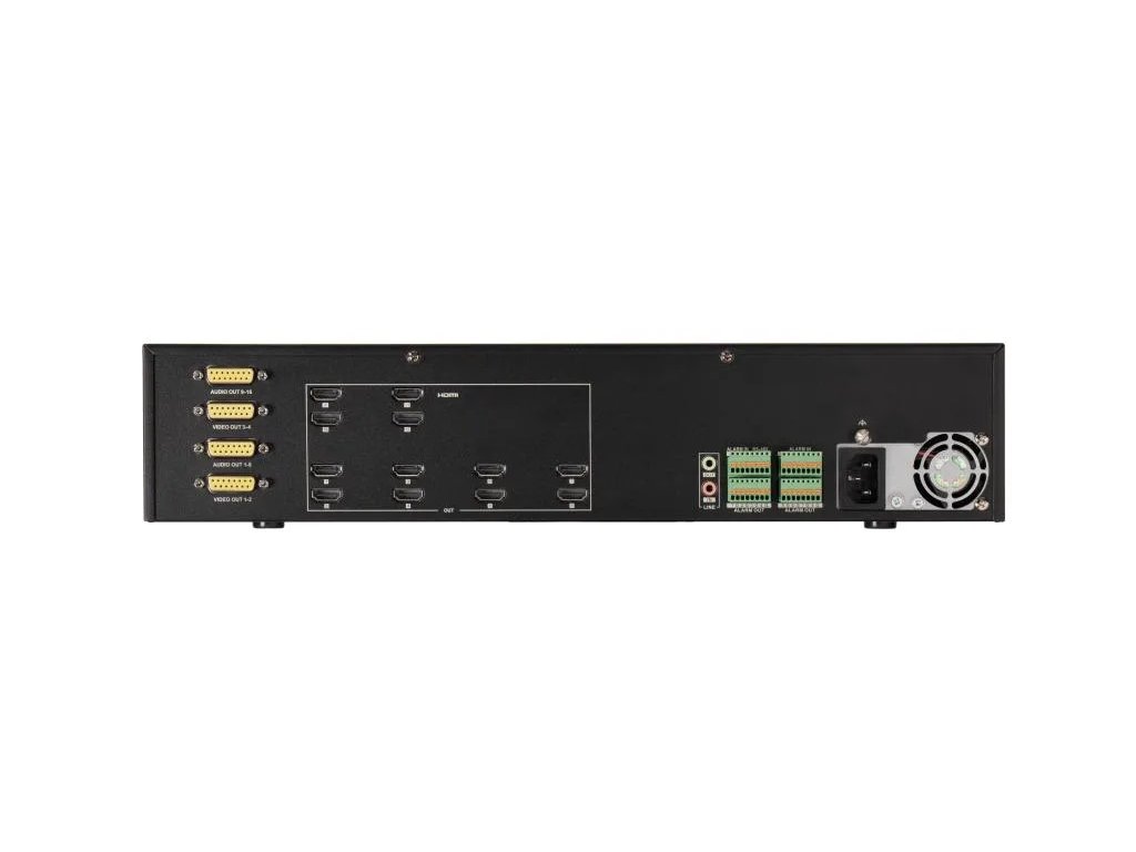 - Podporuje až 3 okná so zdrojom signálu 1080p alebo 1,5 okna so zdrojom signálu 4K na obrazovku a každé okno so zdrojom signálu možno rozdeliť na 1, 2, 4, 6, 8, 9, 12, 16 a 25 okien