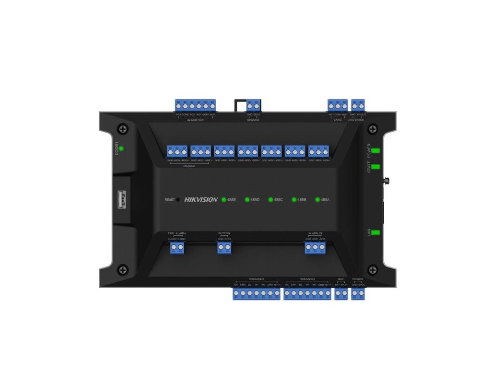 - Indikátor: 9 indikátorov, 1 pre indikáciu stavu napájania, 1 pre indikáciu prevádzkového stavu, 1 pre indikáciu stavu káblovej siete, 5 pre indikáciu stavu RS-485 a 1 pre indikáciu stavu dverí