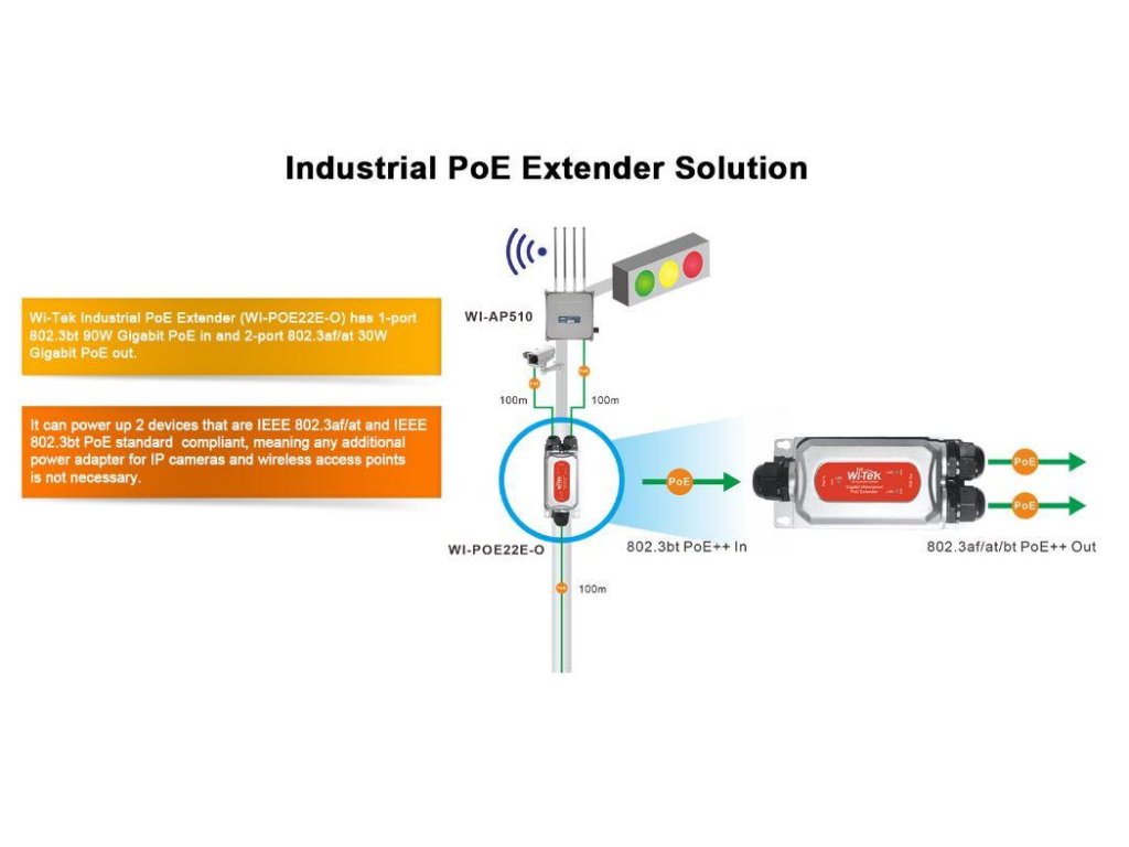 EXWI-POE22E-O vodotesný, priemyselný PoEextender, 2/1out/in 90W