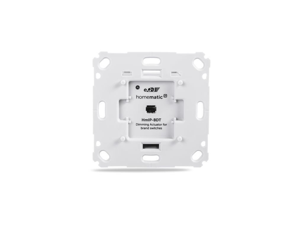 Programovateľný bezdrôtový Stmievací akčný člen (HmIP-BDT) pre zápustnú montáž, napájaný zo siete 230 V, je súčasťou systému chytrej domácnosti Homematic IP.