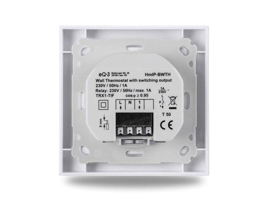 Svojimi kompaktnými rozmermi je Nástenný termostat (HmIP-BWTH) v rámčeku veľkostne porovnateľný s vypínačom svetla. Zariadenie je možné intuitívne ovládať prostredníctvom otočného prstenca, ktorý súčasne plní funkciu tlačidla. Teplotu je možné presne nastaviť v krokoch po 0,5 °C, tá je následne automaticky vysielaná smerom k akčnému členu podlahového vykurovania (HmIP-FAL) alebo Centrálnej jednotke (HmIP-HAP).