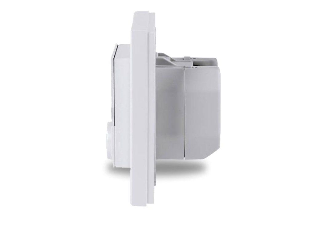 - 1x Nástenný termostat so senzorom vlhkosti a spínaným výstupom 230 V – zápustná montáž