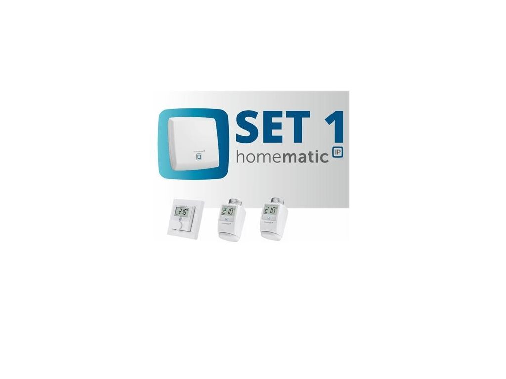 Štartovacia súprava HmIP-SET1 na ovládanie vykurovania pre počiatočnú integráciu inteligentného domu Homematic IP. Súprava obsahuje štyri základné prvky na diaľkové ovládanie teploty v miestnosti a procesu vykurovania podľa individuálnych potrieb, čo vedie k okamžitým úsporám a zníženiu nákladov na energie až o 30 %. Súprava obsahuje centrálnu jednotku HmIP-HAP, 2x termostatickú hlavicu HmIP-eTRV-2, nástenný termostat so snímačom teploty a vlhkosti HmIP-WTH-1 a bezplatnú mobilnú aplikáciu v CZ lokalizácii dostupnú pre Android a iOS.