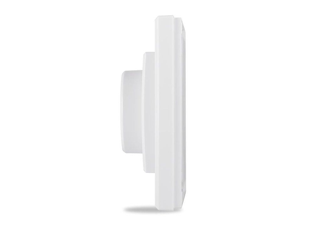 Bezdrôtová komunikácia a batériová prevádzka ponúka možnosť jednoduchej inštalácie bez potreby kabeláže. To znamená, že nástenný diaľkový ovládač je možné inštalovať cez štandardnú zápustnú krabicu pod omietku alebo umiestniť voľne kdekoľvek. Uchytenie pomocou montážneho materiálu (hmoždinky, skrutky) alebo fixácia pomocou dodávaných lepiacich pásikov.