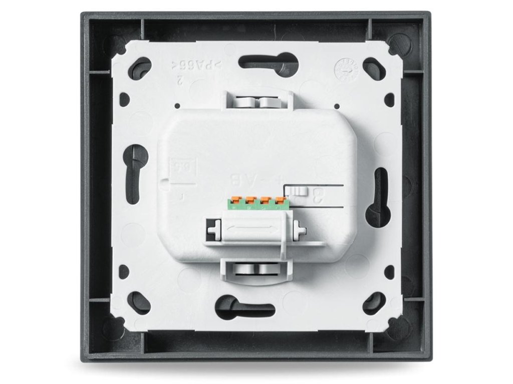 Dodávaná montážna doska je optimalizovaná pre jednoduchú montáž v zápustnej krabici. Odnímateľná push-in svorka uľahčuje pripojenie k drôtovej zbernici.