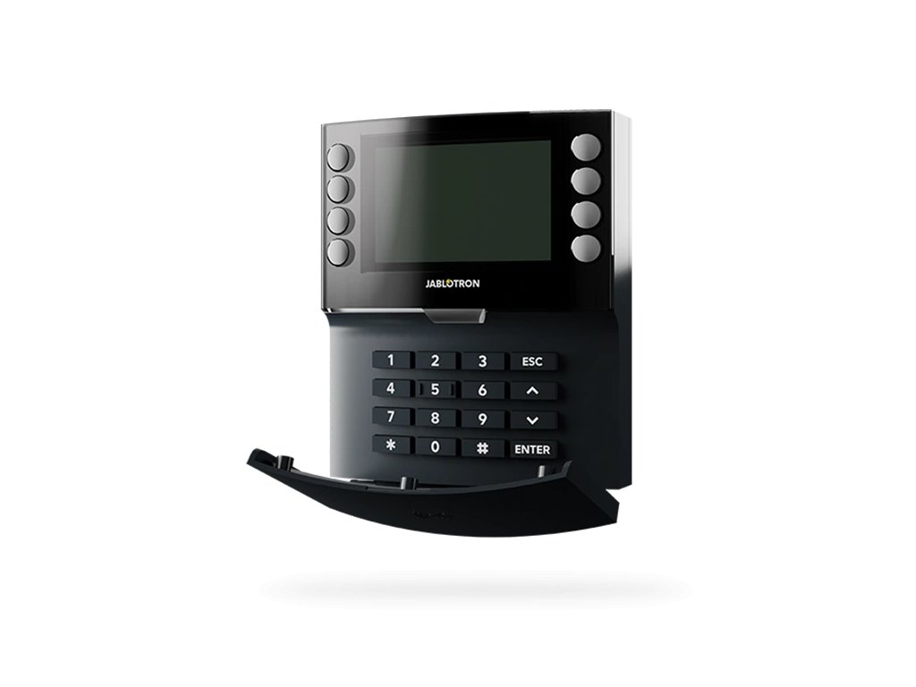 Klávesnica je súčasťou systému JABLOTRON, ktorá slúži na ovládanie a signalizáciu aktuálneho stavu systému. Je vybavená štyrmi segmentmi. Ich popis sa zobrazuje na LCD displeji. Produkt je určený na inštaláciu vyškoleným technikom s platným certifikátom Jablotron. Tento produkt je kompatibilný s ovládacími panelmi JA-102K, JA-103K a JA-107K.